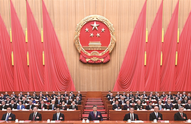 赵乐际说,我们要立足人大职能职责,坚持党的领导、人民当家作主、依法治国有机统一,践行全过程人民民主,坚持好、完善好、运行好人民代表大会制度,切实发挥国家根本政治制度优势,认真履行宪法法律赋予的职责,为实现“十五五”目标任务提供法治保障;人大代表要忠实代表人民利益和意志,依法履职尽责,密切联系群众,在本职岗位上建功立业、作出贡献。