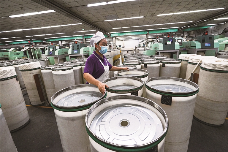 “新疆纺织服装产业政策是个‘大礼包’。”新疆宇华纺织科技有限公司副总经理于林告诉记者,“新九条”(《新疆维吾尔自治区人民政府办公厅关于进一步完善新疆纺织服装产业政策加快延链补链强链九条政策措施的通知》)执行后,每销售1吨纱又增加了50元补贴,企业月净利润增加了7000多元。这家北疆规模最大的气流纺纯棉纱生产基地,已从最初的16万锭发展到如今的41万锭,日产棉纱近40吨。