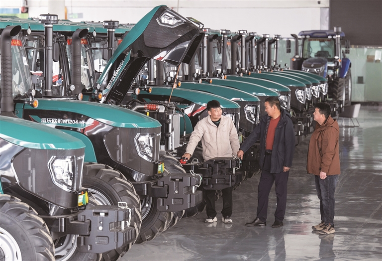 3月17日,昌吉国家高新技术产业开发区新疆中亚农机物流港,农户在选购农机。连日来,不少农户来到新疆中亚农机物流港咨询、选购享受国家补贴的农机具,农机经销商积极备足货源,做好各项服务,为春耕生产做足准备。