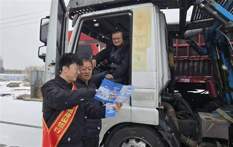 图为建设银行昌吉分行“金石榴宣讲团”成员为货运司机逐一讲解反诈知识。 □王珺雅摄