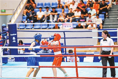8月10日,江西省青少年拳击锦标赛在九江职业大学体育馆正式开赛。“进攻,别退!”拳台上选手们你来我往,台下教练高声喊话提醒。本届赛事吸引了来自全省11个设区市代表队共653名运动员参加,比赛执行中国拳击协会最新审定的《拳击竞赛规则》,采用个人对抗赛单败淘汰赛制。锦标赛由江西省体育局主办,江西省重竞技运动管理中心、九江市体育局承办。 (本报记者 刘 家 摄)