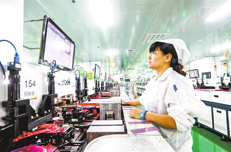 “现在只需一人便可同时监控42台机器运行,相比之前,车间员工减少的可不止一半。”段永成说,在九江经开区的推动下,公司于2023年启动5G+智慧工厂项目建设,构建“1+1+7”智能化体系架构,通过深度整合5G通信技术与ERP、MES等信息化系统,实现了从原材料入库到成品出库的全流程智能化管控,使企业整体生产效率显著提升,产品不良率大幅降低,人力资源配置大大优化,有效提升了企业的核心竞争力。公司目前处于月满产状态,年产能达500亿颗LED灯珠,年产值稳定在4亿元~5亿元区间。若研发的新产品上市,因更低的成本和更好的性能,有望为公司带来约4000万元的年度新增营业额,可进一步巩固企业在LED封装领域的市场地位。