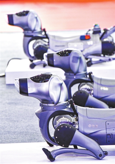 2025世界机器人大会上展示的智能机器狗(8月8日摄)。