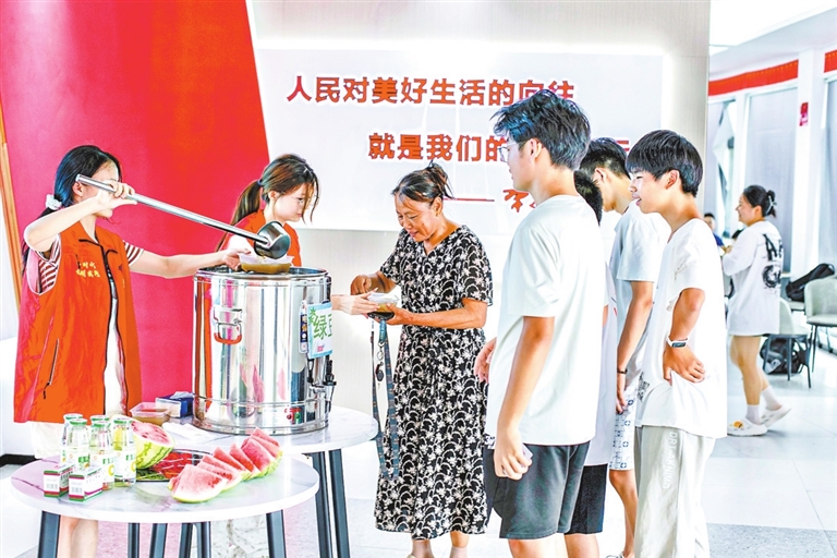 夏日炎炎,都昌县新时代文明实践中心成为市民纳凉佳处。中心不仅提供空调降温,还备有绿豆汤、西瓜等消暑食品,以及清凉油、藿香正气水等防暑药品,让文明实践中心成为群众身边的“清凉港湾”。 (尹 志 段隆圣 本报记者 程 鹏 摄)