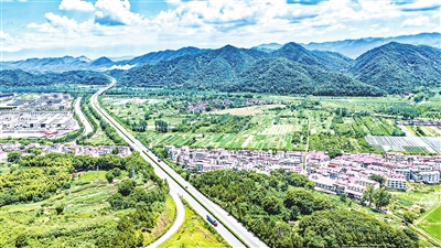 日前,瑞昌市桂林街道,穿境而过的杭瑞高速公路与青山、田园、村落相映成趣,构成一幅乡村生态画卷。 (陈迪权 本报记者 张 驰 摄)