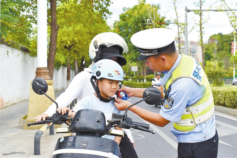 为深入推进“一盔一带”安全守护行动,全面提升广大驾驶人的交通安全意识,日前,柴桑区公安局交管大队走进柴桑科创园等地,针对摩托车、电动车事故特点进行交通安全宣传。活动设置了交通安全趣味互动答题等环节,为参与活动的驾驶人免费发放符合3C标准的安全头盔,进一步强化宣传效果和安全意识。 (李 浩 本报记者 张 驰 摄)