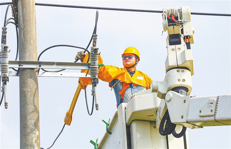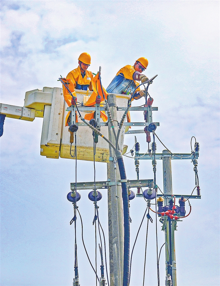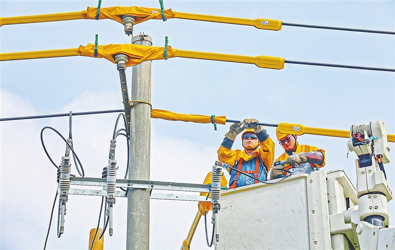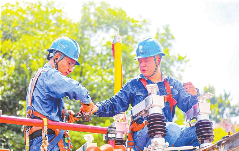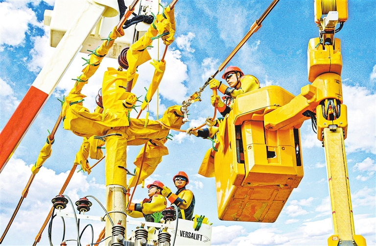 持续高温天气,城市用电需求激增,带电作业班须以加倍付出守护电网的可靠运行。他们攀爬穿梭于热浪中的塔线之间,让企业生产线得以持续运转,让千家万户的空调送出清凉慰藉。