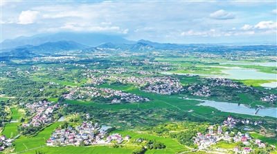 近日,从空中俯瞰共青城市苏家垱乡,星罗棋布的村落镶嵌在翠绿的田野间,蜿蜒的道路如一根根银链串联着家家户户,澄澈的河水倒映着蓝天白云,勾勒出一幅和美乡村画卷。近年来,共青城市以和美乡村建设为抓手,统筹推进产业发展与人居环境提升,对农村基础设施和公共服务设施进行提档升级,因地制宜推出特色餐饮、生态采摘、农家乐等多样化消费场景,让乡村既有“颜值”又有“产值”。(潘 成 本报记者 刘 家 摄)
