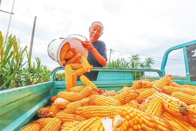8月23日,河北省玉田县虹桥镇农民在收获玉米。(新华社发 刘满仓 摄)
