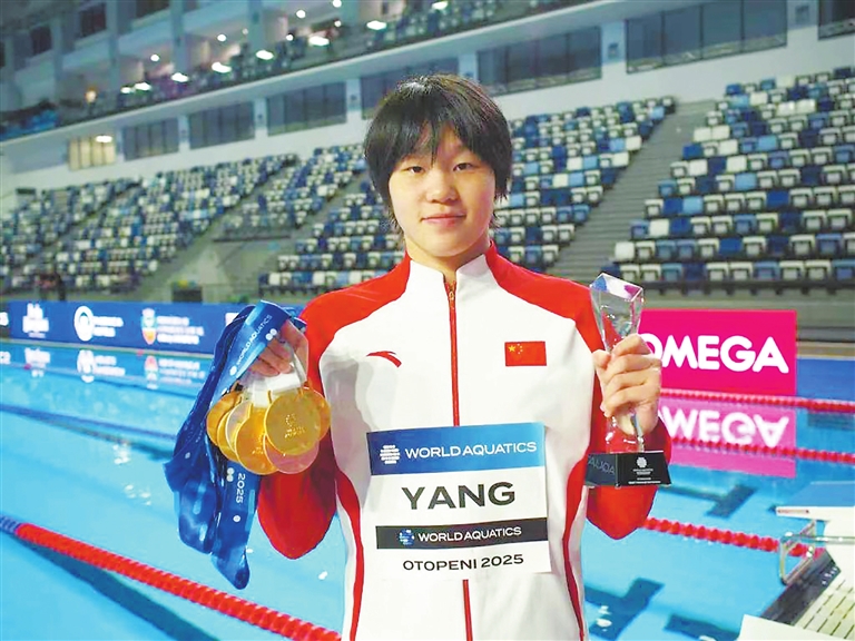 “这次比赛我对自己两套评分体系,一套是给自己打99分,不能让自己太骄傲。”杨佩琪笑着说,“另一套是80分,我发现自己还存在很多问题和不足,需要继续提高和努力。我的世青赛收获是‘自信、勇气和责任’,也让我萌生了在2028年洛杉矶奥运会的奖牌梦想。”