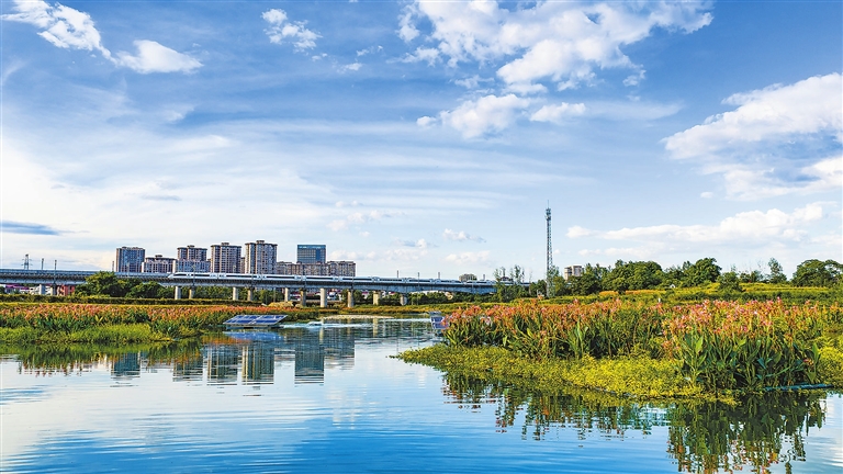 初秋,湖口县南北港上游北港流域风景如画。为解决生活污水收集不足、水产养殖散乱及农业面源污染等问题,湖口县启动南北港上游北港流域水环境综合治理工程。因地制宜通过地形重塑、岸线构造、植被配置等系统治理,有效激活区域生态系统活力,充分改善南北港上游北港流域的水环境质量,提升生态系统稳定性和生物多样性。 (李学华 张 颖 摄)