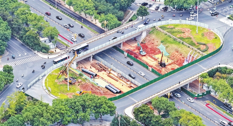 8月27日,长虹立交桥拓宽改造施工正酣,桥底桩基作业稳步推进。此次工程旨在缓解交通高峰压力、提升城市交通便捷度,完工后将优化区域交通,助力城市通行升级。请过往车辆留意路况,安全绕行。 (本报记者 孙昌模 摄)