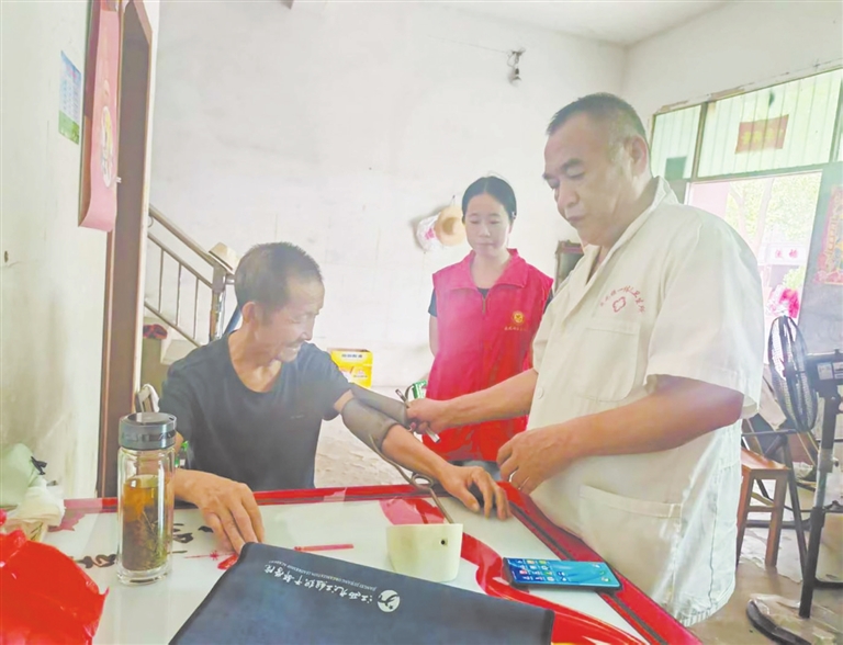 彭泽讯(张清 文/摄)近日,彭泽县黄花镇东风社区联合黄花镇卫生院家庭签约医生团队,积极开展上门医疗服务,将优质医疗资源送至居民家门口,为社区居民——尤其是行动不便的老人、慢性病患者和特殊困难群体,筑起一道坚实的“健康防线”。