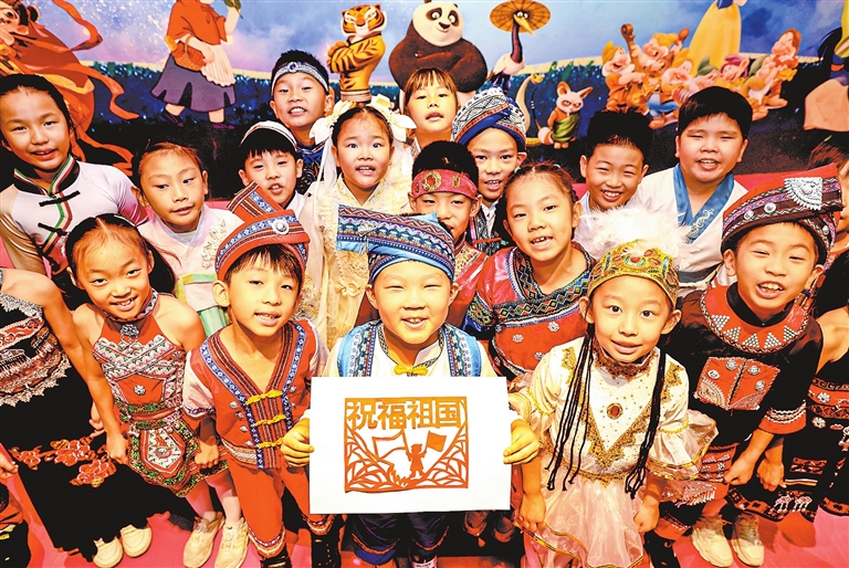 9月25日,在湖北省武汉市,未来实验小学学生开展迎国庆主题活动。