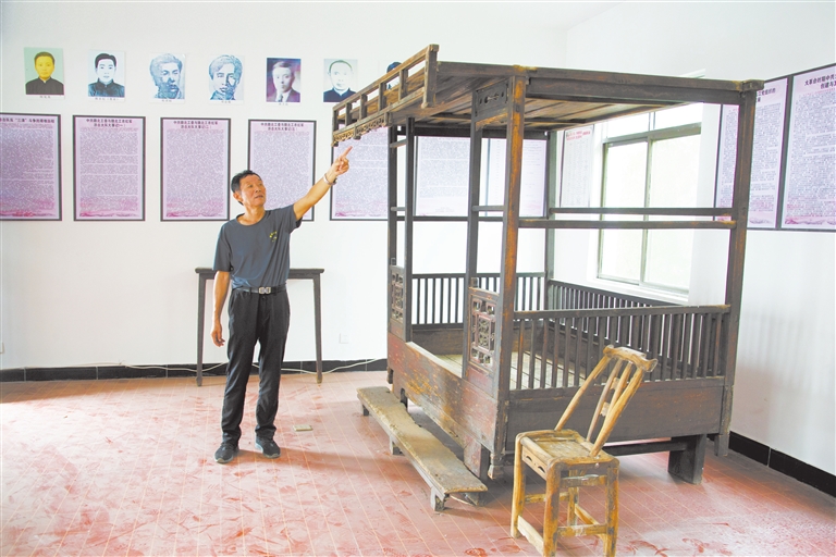在柴桑区港口街镇港口村红色教育活动室内,一张朴素的木床静默伫立,岁月的痕迹清晰可见,仿佛在无声地诉说着90多年前那段烽火往事。近日,柴桑区港口街镇港口村村民何升银等人,将何见炎烈士早年从事地下工作时使用的木床、桌、椅接回故乡,并以此为核心展品创建红色教育基地,使这位26岁英勇就义的革命先辈的事迹得到郑重记述,重新焕发光彩,成为当地开展革命传统教育的生动教材。