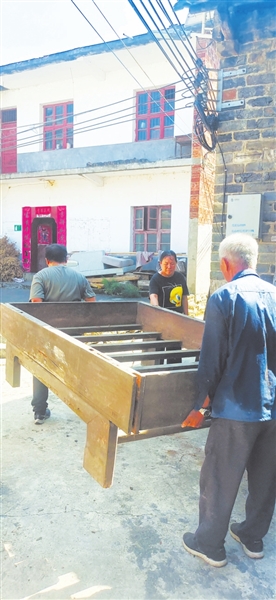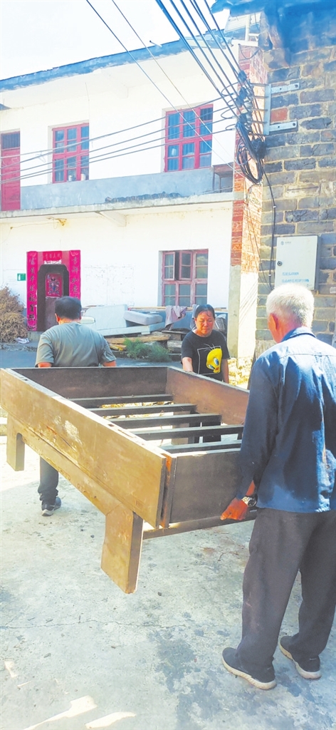 返回港口村后,何升银立即向村党支部书记周凯林汇报“瓜山村见闻”。周凯林高度重视,称村里正计划打造红色教育基地,若能接回何见炎烈士遗物,意义非同寻常。近期,何毓成给何升银来电告知,兄弟俩同意无偿捐赠何见炎烈士遗物。何升银遂与村里的何咸明、何庆忠、何升国前往瑞昌市洪下乡瓜山村,将何见炎烈士当年使用过的木床、桌、椅郑重接回港口村,存放于红色教育活动室。在拆运烈士遗物过程中,瓜山村的101岁老人何祥平动情地回忆说:“何见炎是洗心桥(今港口街镇)人,我记得很清楚。有一次国民党派大批人马搜捕何见炎,他被我们瓜坑村的村民悄悄藏起来,敌人扑了个空。”