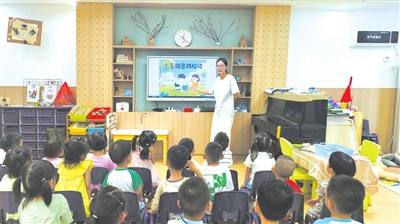 各班教师还运用动画、童谣等形式,帮助幼儿识别不同颜色垃圾桶的名称及用途,在寓教于乐中增强了幼儿的绿色生活理念。(张可妮 摄)