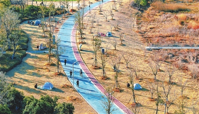 冬日的芳兰湖湿地公园,宛如大自然的调色盘。澄澈湖水泛着温润的蓝,橙红金黄的草木环抱岸边,与琴湖大桥的弧线、暖色调高楼相映成画。周末的骑行道上轻骑穿梭,彩色帐篷如花绽放在草坪,孩子们嬉戏奔跑,大人围坐谈笑,让斑斓景致浸满生动的人间烟火。 (王前云 本报记者 洪显智 摄)