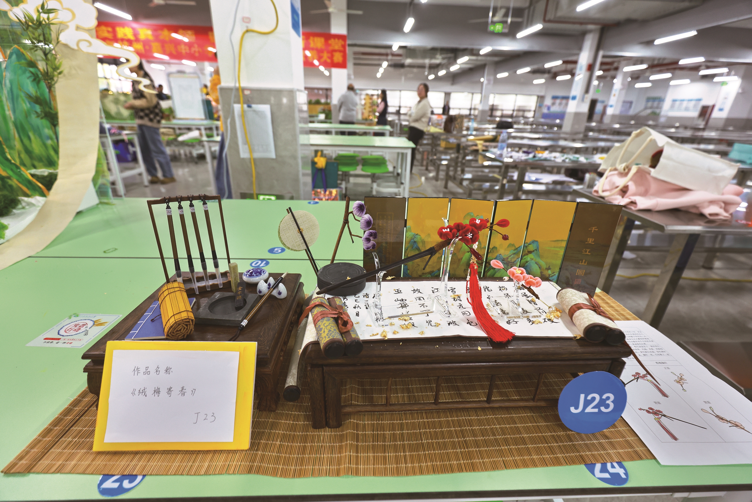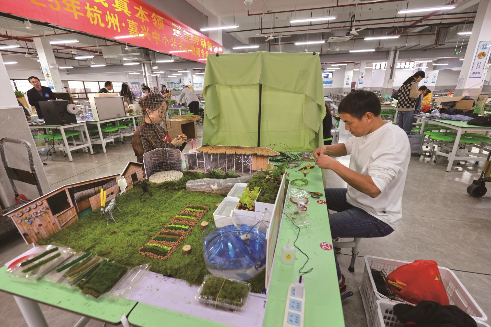 秀洲区闻川小学的赵荻老师在技能实操环节的参赛主题是“端午织萃·兽舟纳福”,现场完成了一系列端午主题编织作品。“看到两地老师带来的‘废旧材料立体造型’‘AI劳动学伴’等多元课程,我深刻感受到劳动教育的广阔世界。”赵荻表示,自己的教学理念和业务能力在大赛中均得到了提升。