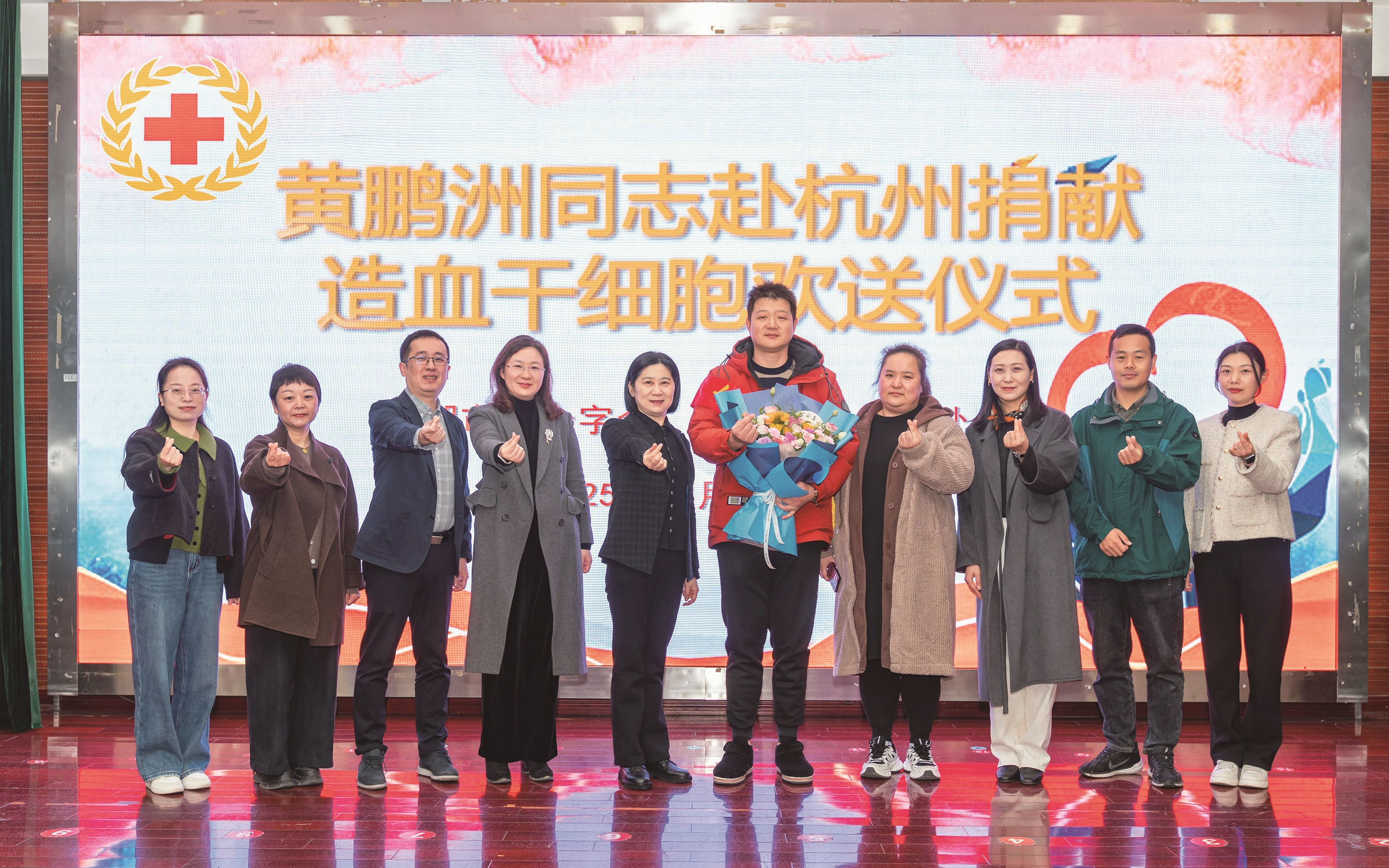 近日,一场简朴而温馨的欢送仪式在平湖市当湖街道办事处温暖举行。平湖市人民政府副市长宋怡玲,平湖市红十字会党组成员、副会长孙凤,当湖街道领导朱娜、顾晓鸣,当湖街道相关部门单位负责人、村社区红十字会会长及志愿者齐聚当湖街道办事处,共同为即将启程前往杭州捐献造血干细胞的黄鹏洲送上鼓励与祝福。