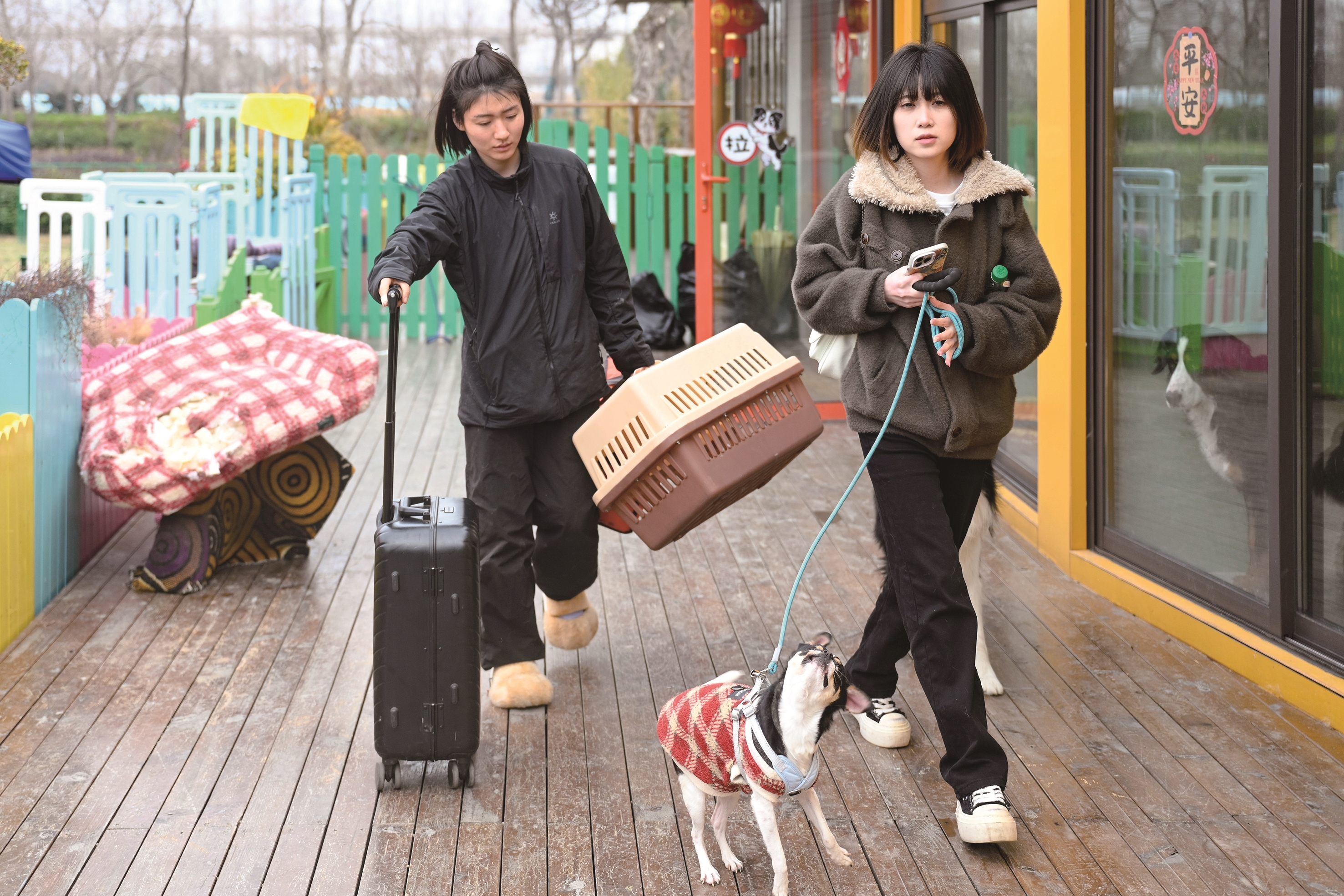假期里,不断有主人拉着行李箱远道而来,奔赴这场与“毛孩子”的团圆之约。