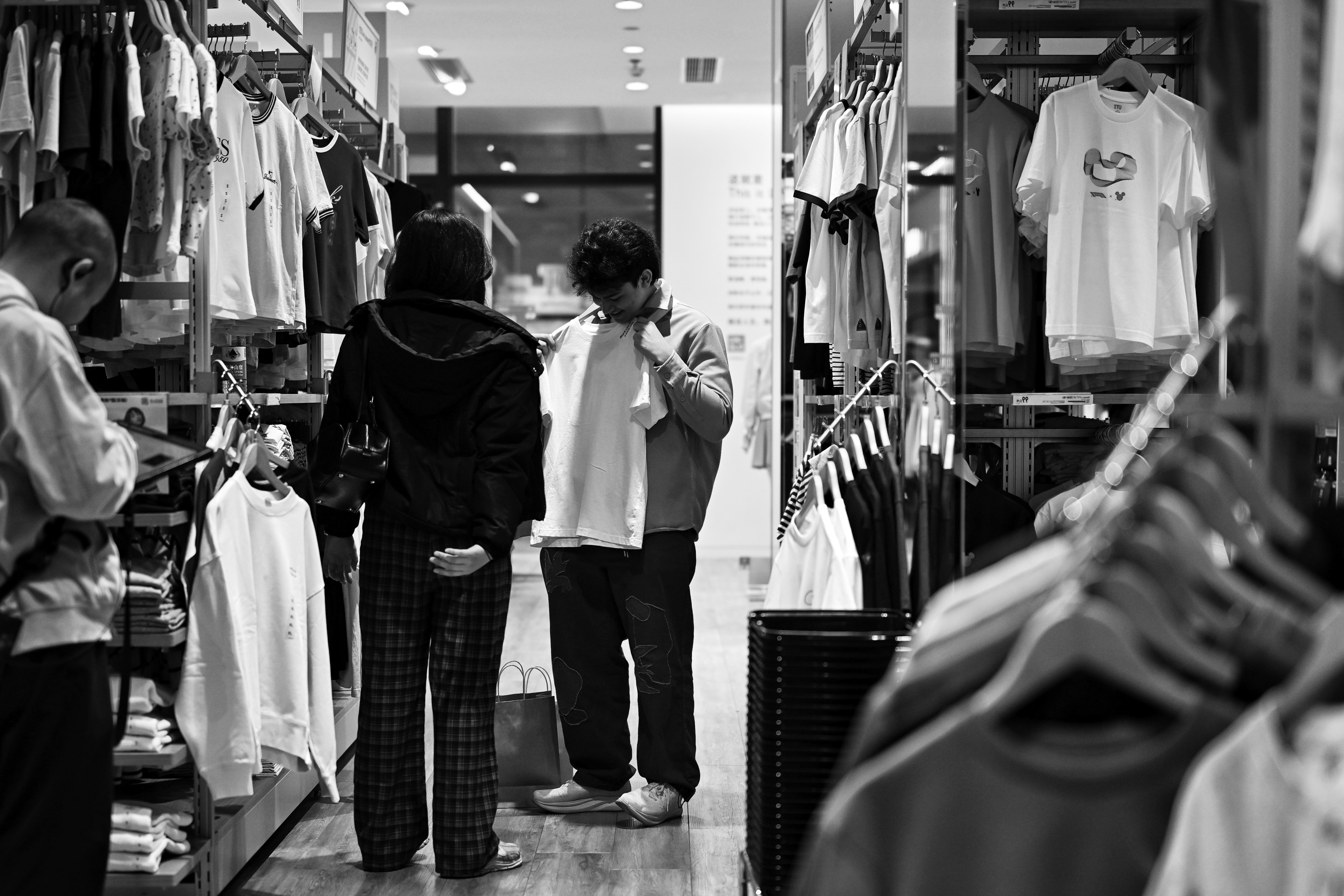 昨天,在嘉兴市区南湖天地,消费者在挑选心仪的短袖服装。春天已到,夏日不远,不少人已开始憧憬夏日的美好。