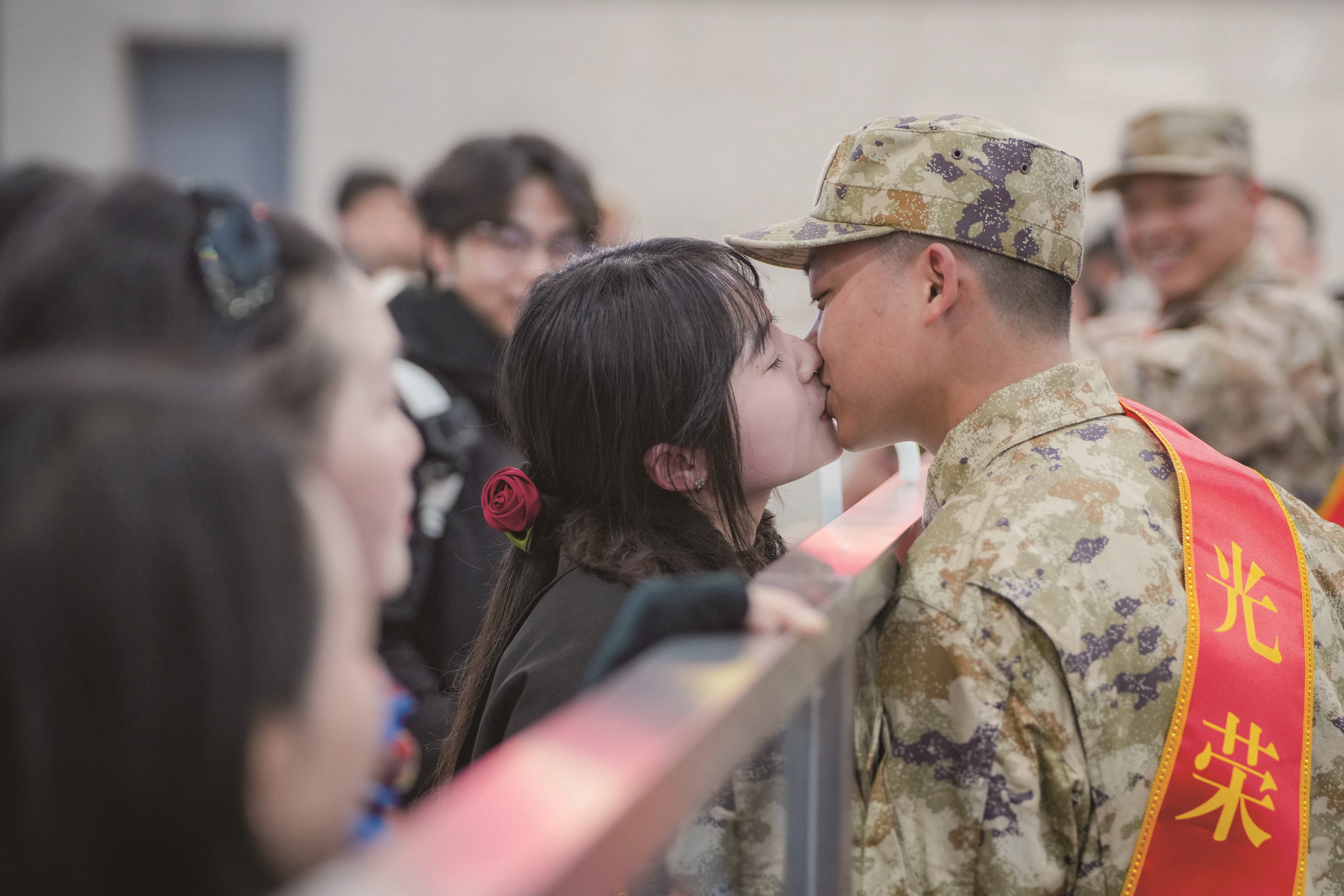 昨天清晨,在嘉兴南站,经过层层选拔的嘉兴市2026年上半年入伍新兵整装列队,奔赴军营。前来送行的家人为他们整理着装,反复叮嘱。列车启动,不少新兵贴着车窗挥手作别故乡。