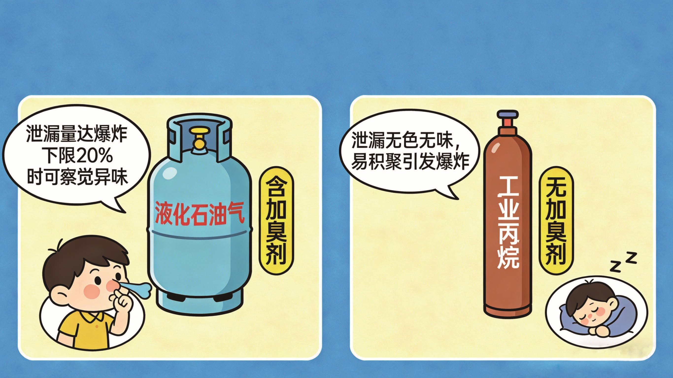 工业丙烷、丁烷用作工业生产原辅料,对气体纯度要求较高,因此不添加加臭剂,无色无味,泄露后难以被发现和警觉。