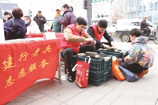 老兵传技艺、青年践初心。活动现场,老兵党员带领青年团员开展便民磨刀服务,在这一磨一擦中传承优良作风与奉献精神,以实际行动践行金融为民、服务群众的初心使命。