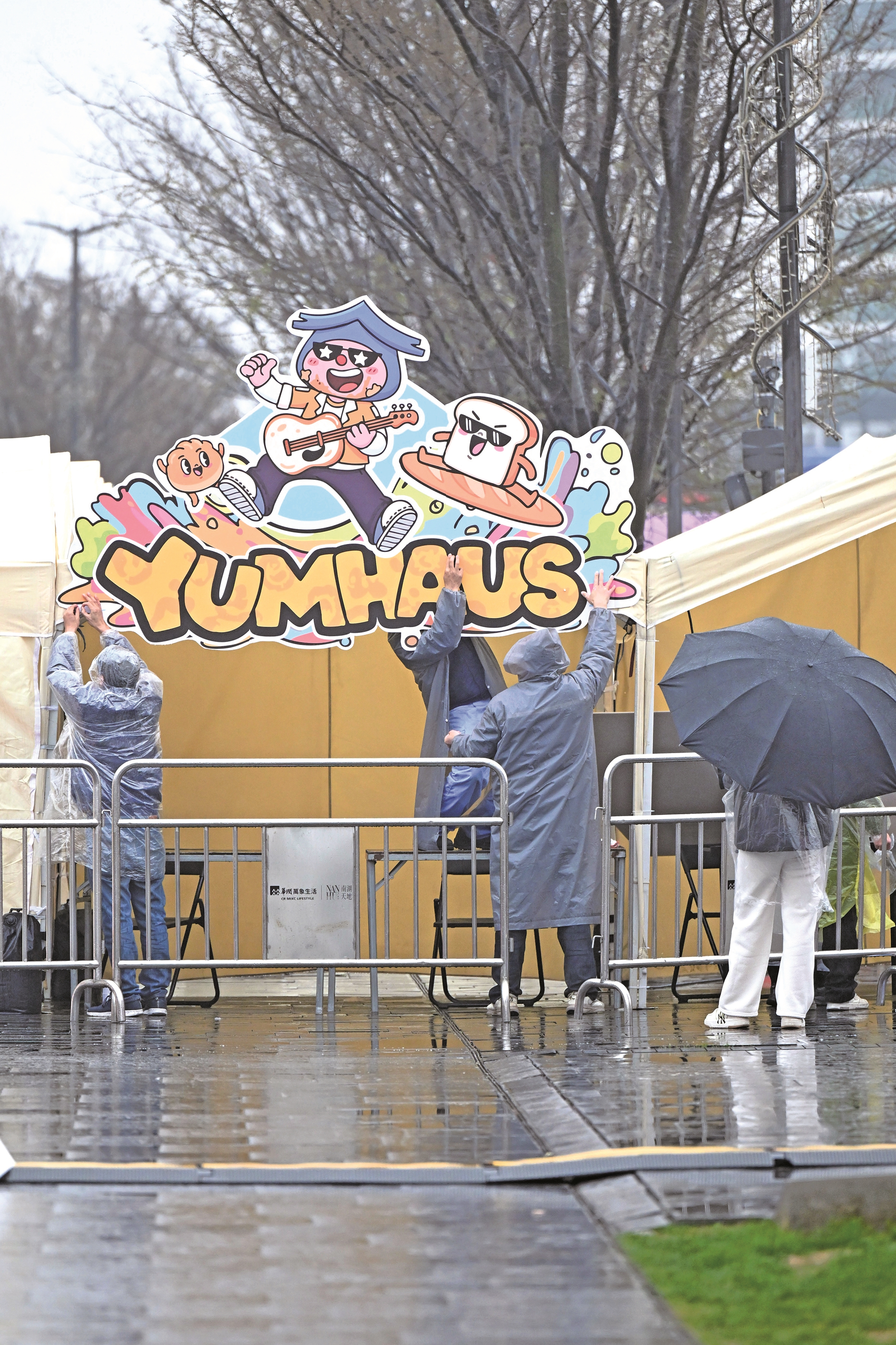 昨天,虽然阴雨绵绵,但嘉兴市区南湖天地一派忙碌景象。工作人员正冒雨加紧施工,为即将启幕的面包甜品节进行最后的布展工作。