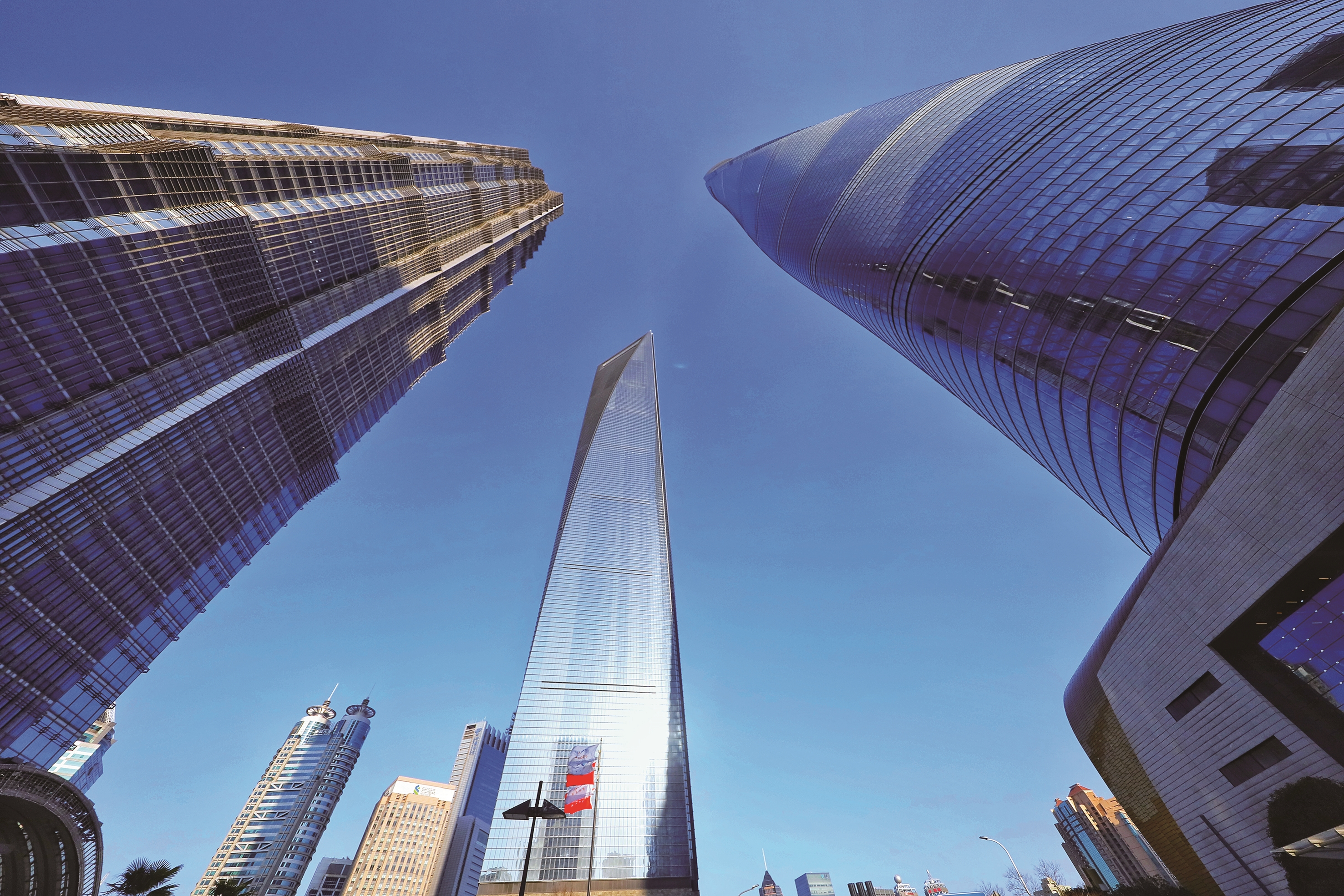 点评:极致的仰拍带来强烈的透视效果,让上海陆家嘴三栋标志性建筑向画面中心汇聚,强烈的纵深感凸显出摩天大楼的宏伟气势;构图干净利落,以纯净的蓝天为背景,无多余杂物干扰,让建筑本身的线条和质感成为绝对主角。这幅作品以强烈透视与简洁画面,展现出中国现代都市的磅礴气势。
