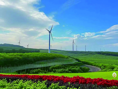 应城有名店风电场项目位于应城市西北部,远远望去,一台台风电机组错落有致,在风力吹动下,巨大的叶片缓缓旋转,与蓝天白云相映成画。