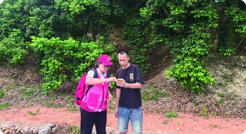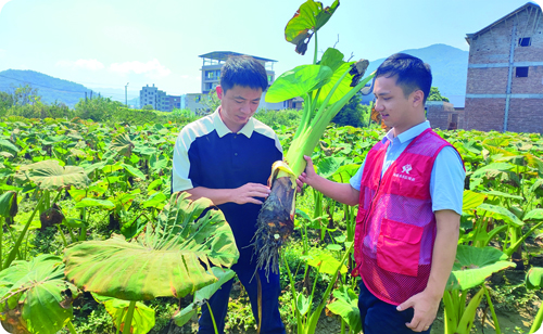 闽清农信联社金融助理查看农户槟榔芋种植情况