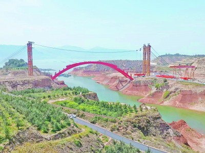 中铁二十一局承建的甘肃永靖县刘家峡太阳岛至魏家坡道路岘沟特大桥。周 鹏 摄 |  |