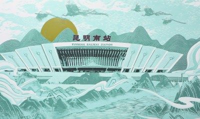 雀舞春城——昆明南站(套色木版) 苑 鹏 |  |