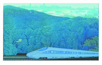 钟山风雨秀——京沪高铁(版画) 蔡频春 |  |