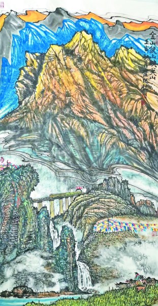 高铁下的老茶寨(国画) 成秉羿 |  |