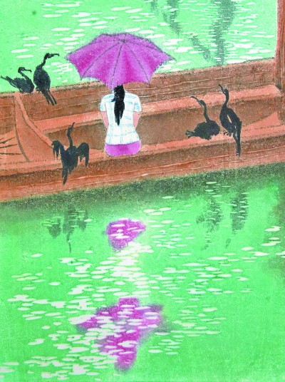 雨润白洋淀(版画)冯 毅 | 编者按
