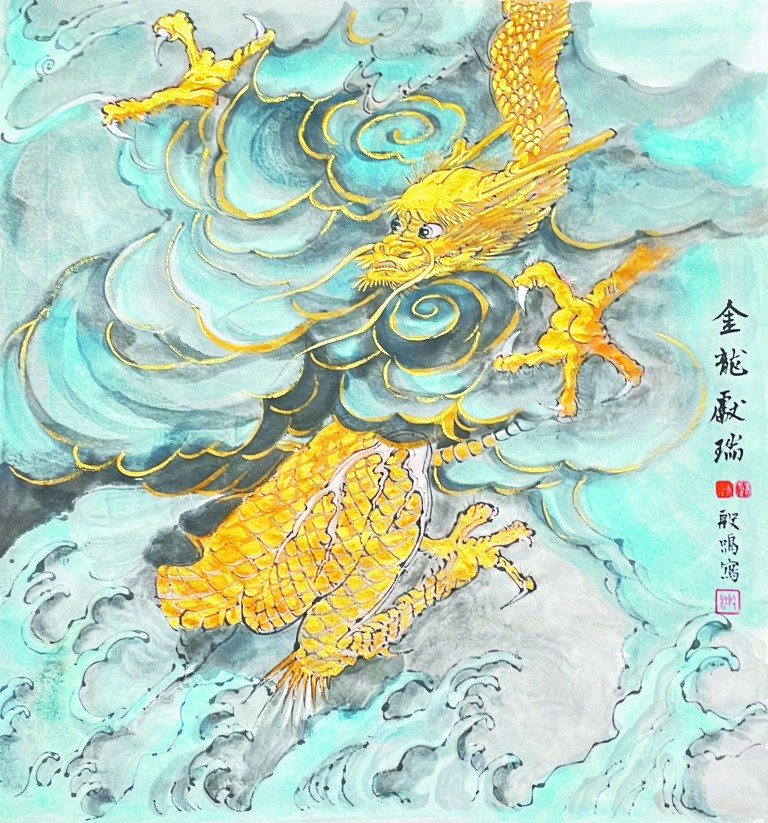 金龙献瑞(国画)殷 鸣 | 迎接新年的喜庆场面、美好的生活祈愿……翻开一张张色彩绚丽的作品,新一年美好生活的生动图景仿佛扑面而来。