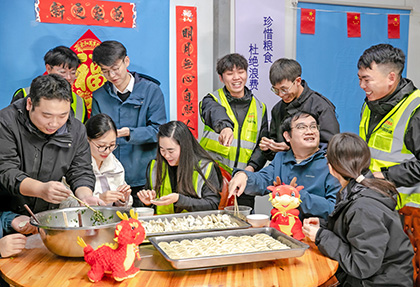 天时人事日相催,冬至阳生春又来。中国铁建的年味,是点缀驻地内外的喜庆“中国红”,是承载新年期许的手写福字,是坚守现场的员工捏出形状各异的饺子,是热闹团圆的联欢活动上欢笑阵阵,是收到企业慰问年礼的小儿女扬起笑脸,是温馨灯笼映照下那桌充满烟火气的年夜饭……春节“氛围组”已到位,年味在我们所在之处氤氲开来,形成了独属于中国铁建人的“春节记忆”。