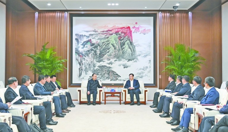 戴和根对宋乐伟一行到访表示欢迎,对徐州市委、市政府长期以来给予中国铁建的关心支持表示感谢,并介绍了中国铁建在徐业务开展情况。他表示,徐州是华东地区重要的经济、科教、文化、金融、医疗和对外贸易中心,也是共建“一带一路”重要节点城市,发展前景广阔,与中国铁建有着深厚的历史渊源和良好合作基础。中国铁建作为特大型综合建设集团,愿充分发挥全产业链优势,进一步与徐州紧密对接,聚焦交通基础设施、地下空间、储能储氢储油、新兴业务等领域,深化务实合作,推动双方互利共赢取得更大成果。
