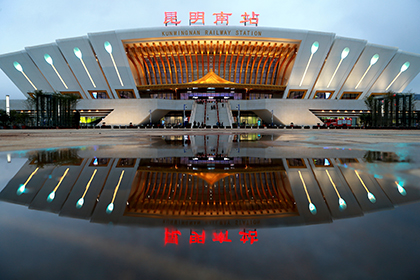 西南地区最大的综合性交通枢纽高铁站房工程——昆明南站。 张启山 摄 |  |