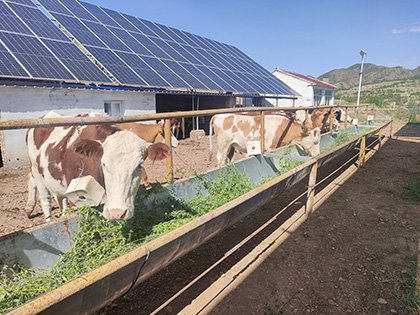 南朝碾村拥有得天独厚的光照条件和草场资源。经过反复论证,中国铁建投入帮扶资金,利用村里的坡地建起了养殖圈舍,圈舍上方安装光伏面板,并入国家电网,引进企业发展养殖业。经过7年的努力,目前该村已经拥有2000只羊、近600头牛,还有猪、鸡等家畜家禽,仅“农光互补”光伏养殖项目,便可为南朝碾村带来约35万元的集体收益,同时还为村民创造了9个就业岗位。