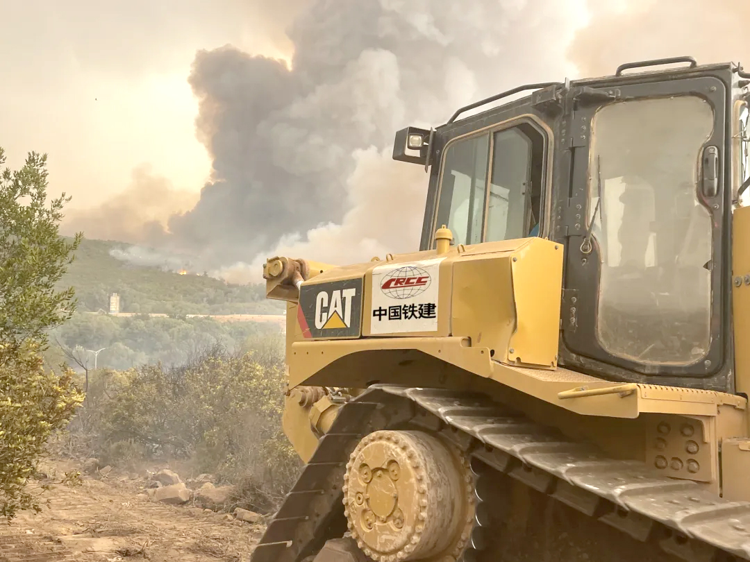 2022年8月17日,阿尔及利亚北部地区暴发山火,中铁十七局阿尔及利亚项目利用工程机械,在森林中清理出一条条防火隔离带,成功遏制山火蔓延。 张 崇 摄 |  |