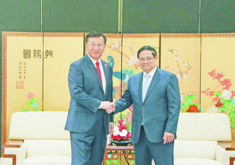 戴和根说,今年10月在越南河内参加中越企业代表座谈会,现场聆听总理阁下讲话,深感振奋、备受鼓舞,再次感谢总理阁下给予中国铁建的关心和支持。戴和根介绍了中国铁建的整体情况,特别是在越南铁路和轨道交通领域所取得的成绩。他表示,中国铁建愿积极融入中越合作大局,在共建“一带一路”倡议和“两廊一圈”发展战略合作框架下,全方位、深层次参与越南基础设施建设,深化与越南有关各方的合作,为越南经济社会发展和人民福祉提升贡献更大力量。