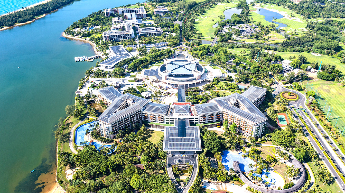 在海南博鳌东屿岛,全世界启动风速最低的花朵风机24小时持续发电,采用“光伏玻璃、百叶、电动窗通风”组合的亚论酒店外幕墙,每年可减少20%的空调用电量和35%的太阳辐射热量,光伏地砖、磁悬浮变频离心式冷水机组……八大类19项近百种绿色低碳建筑技术,焕然一新的东屿岛,向世界展示“向绿图强”的中国样板。