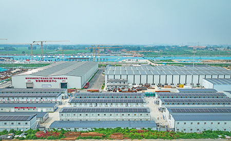 由中铁建设承建的雄忻高铁小里站是雄安地区首个“光伏+临建”低碳运行管理试点项目,项目部在产业工人社区及管理人员生活区临建屋顶铺设了714块光伏板,面积达1800平方米,总装机容量399千瓦,预计全年可节约电费33万元。图为社区及生活区全景。 刘雪彪 摄 |  |
