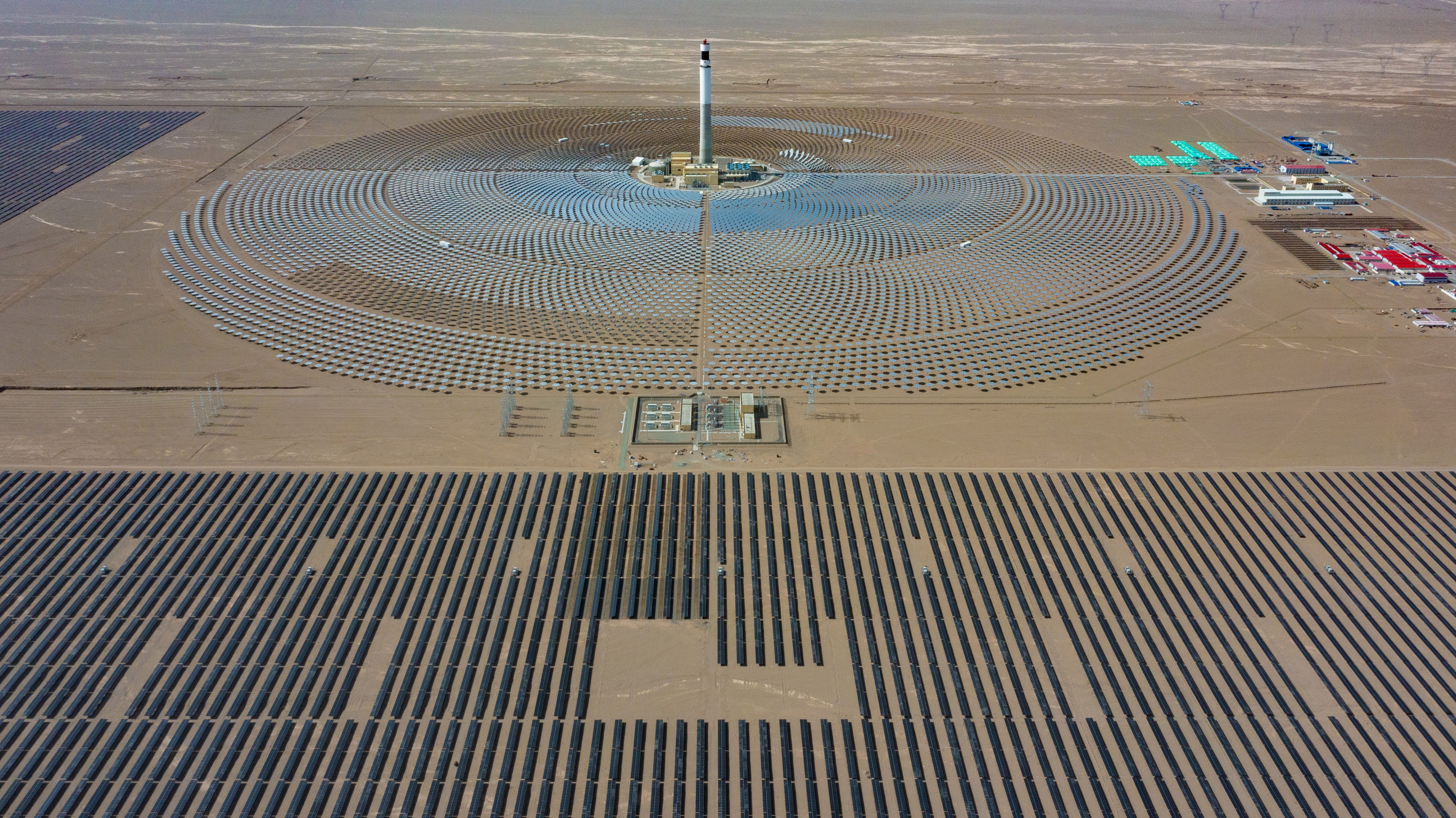甘肃阿克塞汇东新能源光热+光伏试点项目全容量并网发电。 古建敖 摄 | 本报记者 余 智