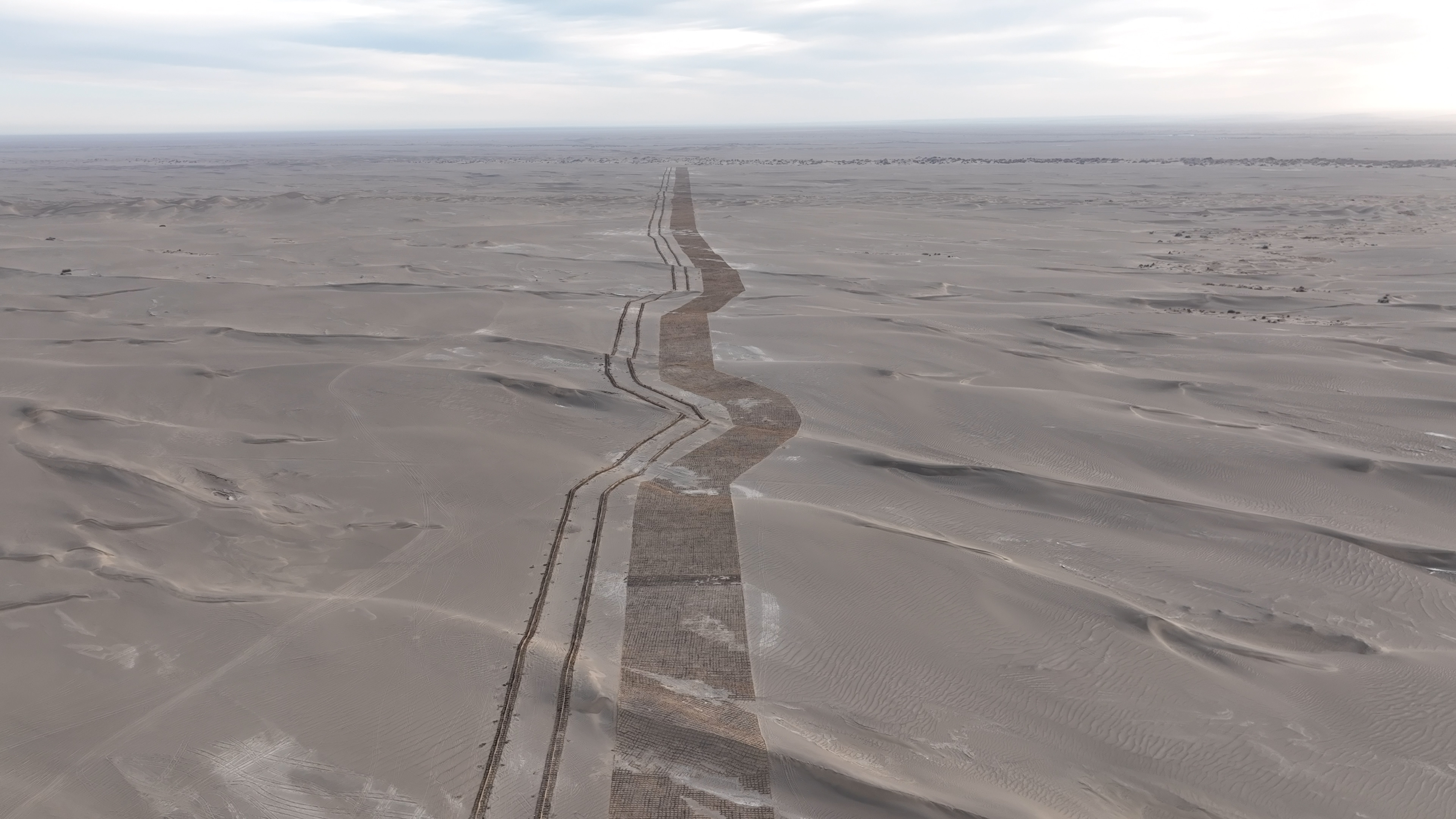 塔克拉玛干沙漠锁边固沙工程。 韩 冬 摄 |  |