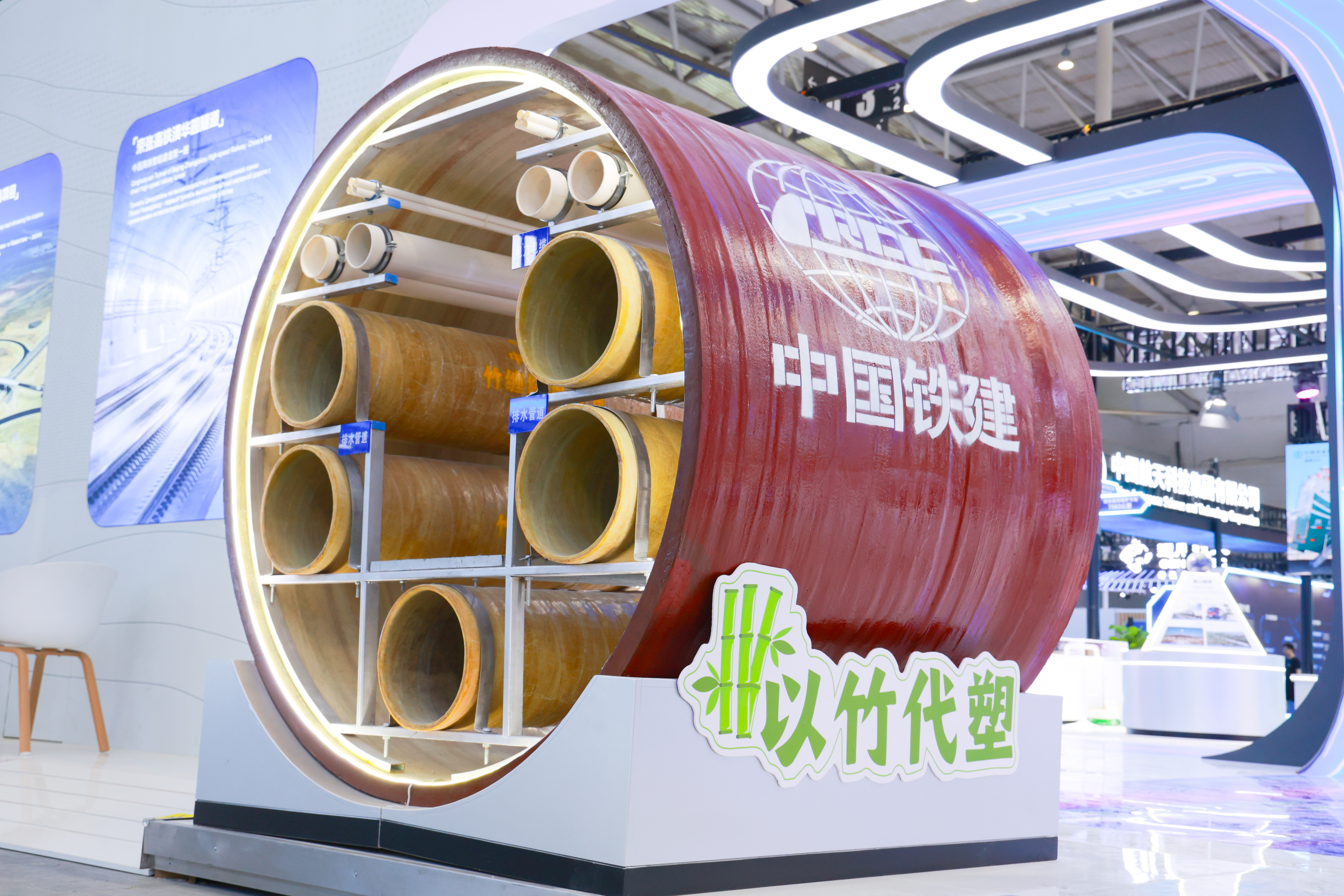 中国铁建“以竹代塑”展览专区惊艳亮相第八届中国—亚欧博览会。 王成林 摄 |  |